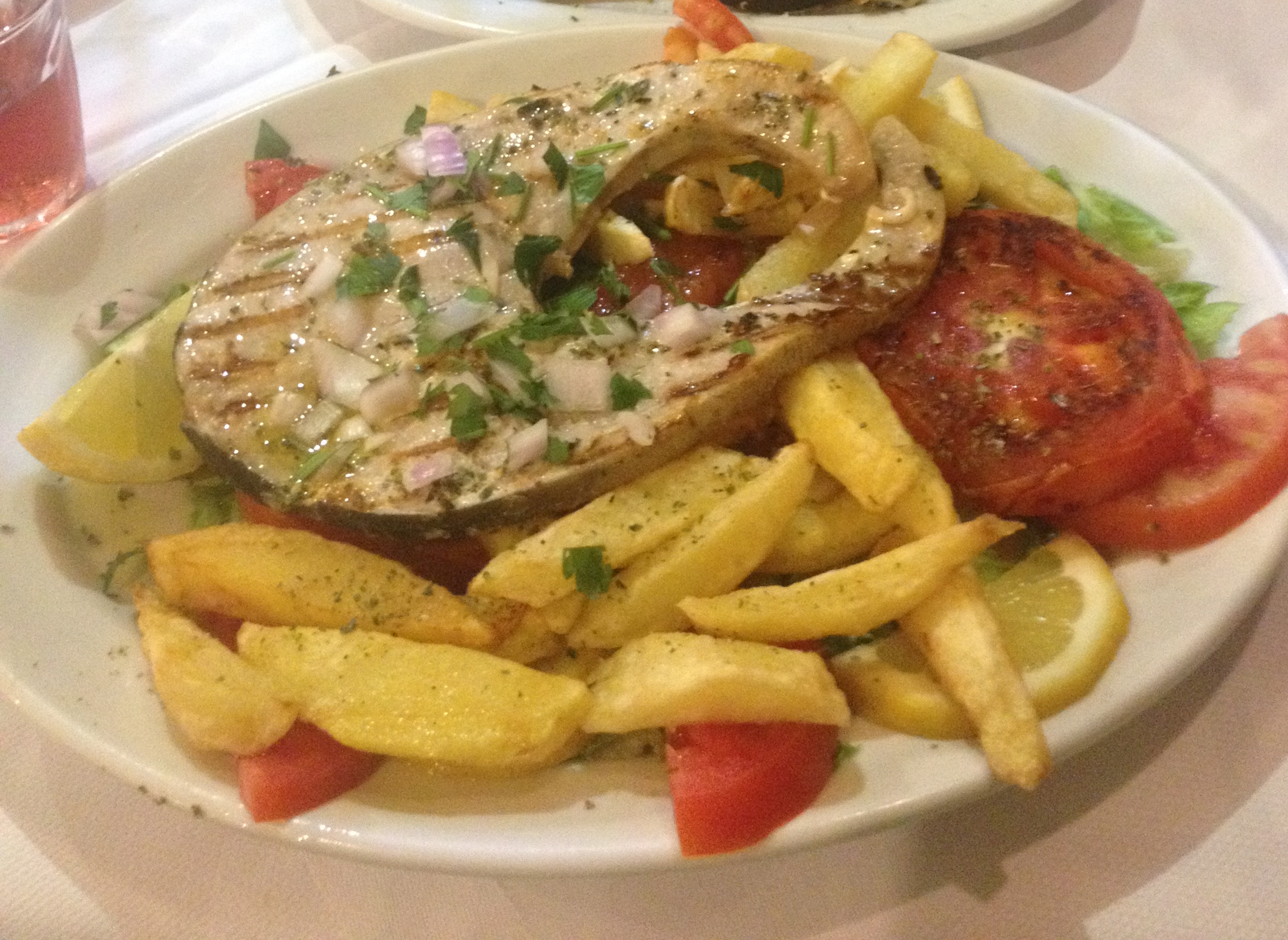 A Canée, il y a beaucoup de petits restaurants appelés « Tavernes ». lls sont généralement dans les petites rues adjacentes du port. Oui parce que sur la place du port, beaucoup de restaurants s’y trouvent mais ce sont des attrapes touristes et leurs prix qui vont avec… On a essayé plusieurs tavernes souvent tombés par hasard comme Steki restaurant, Tavern Strata et Tholos restaurant. Dans chacun de ces restaurants les plats s’y ressemblent et sont très typiques de la cuisine grecque comme citer précédemment. On a pu essayer différents plats notamment pleins de plats aux poissons (l’effet bord de mer surement ^^) et aussi quelques plats de viandes (kebab compris), du tzatziki et de la tapenade.