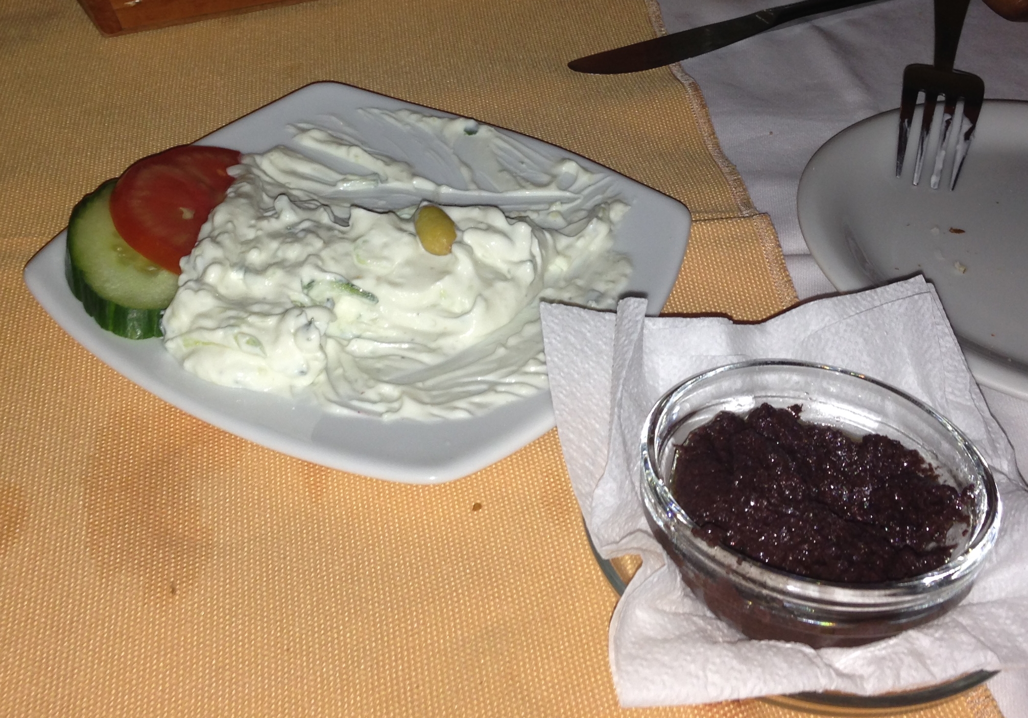 We also ate a Cretan salad. Generally, it is composed of tomatoes, cucumbers, onions, feta, olives seasoned with herbs and olive oil. The one we ate was a bit more refined but still clustering the same elements in a different way.