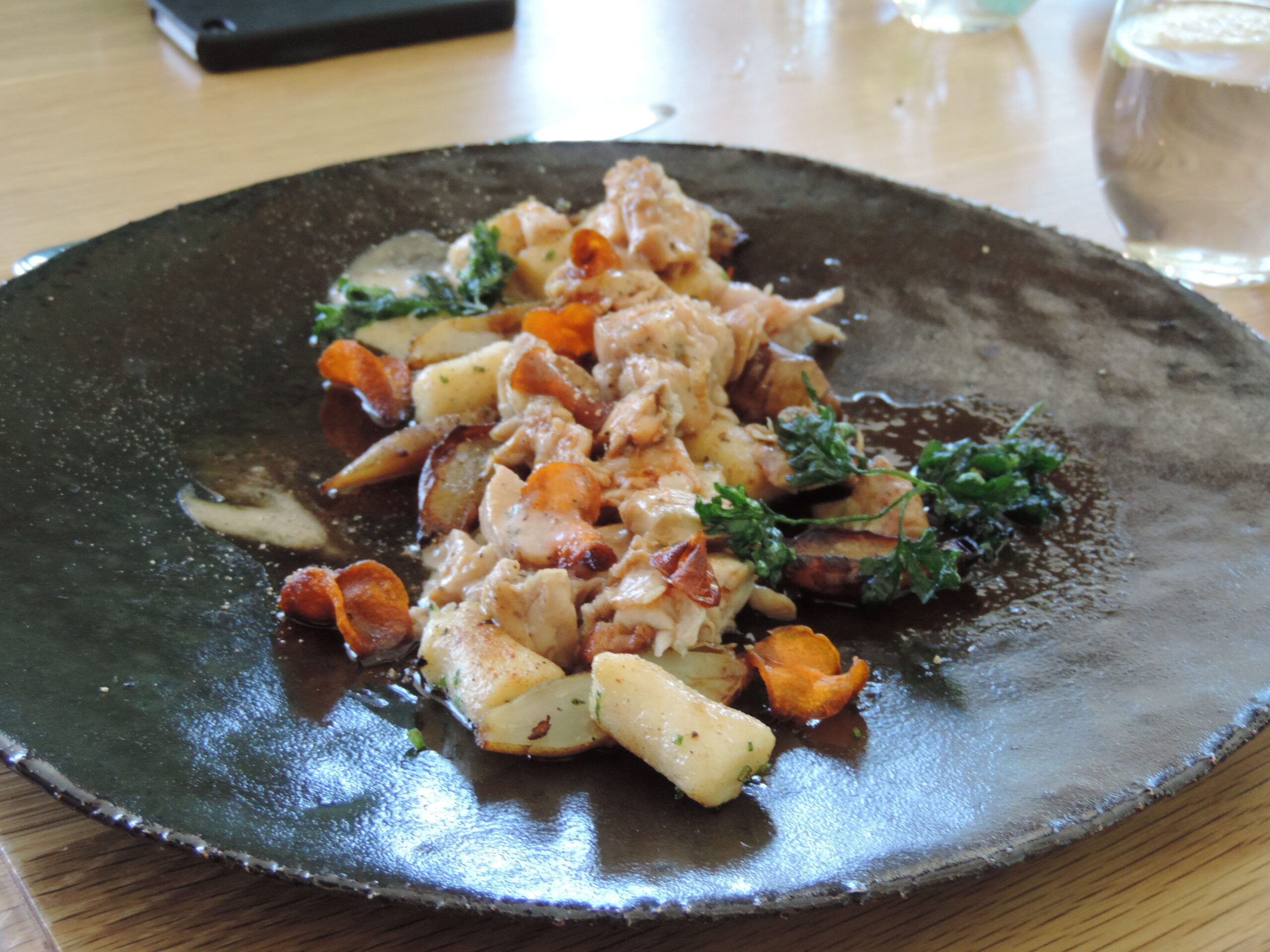 Il y a quand même quelques spécialités à base de viande comme la viande d’autruche et de crocodile, le biltong (viande séchée à plusieurs saveurs – qui devient très tendance comme encas protéiné au Royaume-Uni). Si vous êtes des mangeurs de viande « bien cuit » (comme je l’étais), vous allez devenir des mangeurs de viande « à point ». La viande est si tendre et succulente ce qui démontre la qualité de la viande sud-africaine. J’ai eu l’occasion de manger dans le restaurant d’un vignoble, Boschendal ,entre la region de Franschhoek et Stellenboch dont je vous parlerai un peu plus bas. Voilà quelques exemples des plats de viandes :